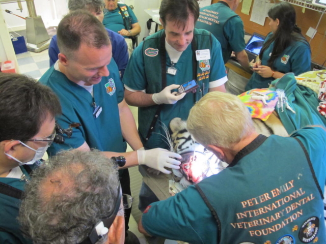 A large team of (17) doctors and technicians from PEIVDF made the trip to sultry Georgia in July to treat a large roster of (16) patients, including (3) lemurs, (3) primates, (4) birds, (2) kinkajou, (2) bears, a coatimundi, and an African wild dog.